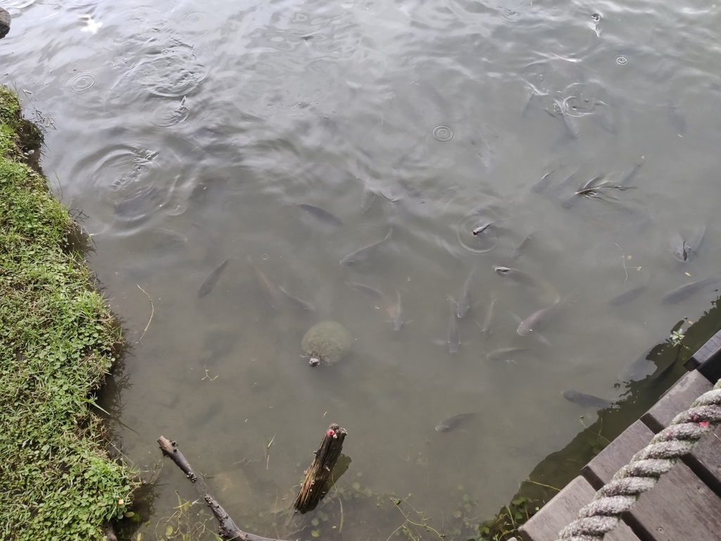 湖中也有許多烏龜、魚類,不少遊客帶麵包來這邊餵湖中生物