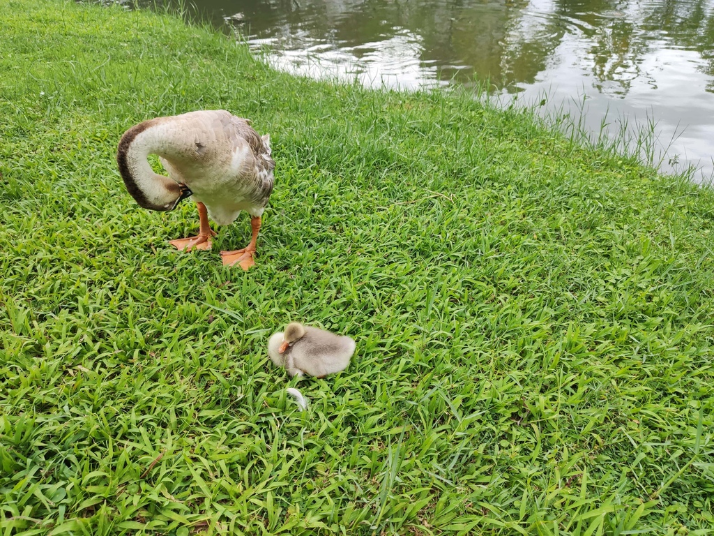 鵝爸鵝媽也很細心照顧,完全就是貼身保鑣,除了鵝寶寶有名子之外