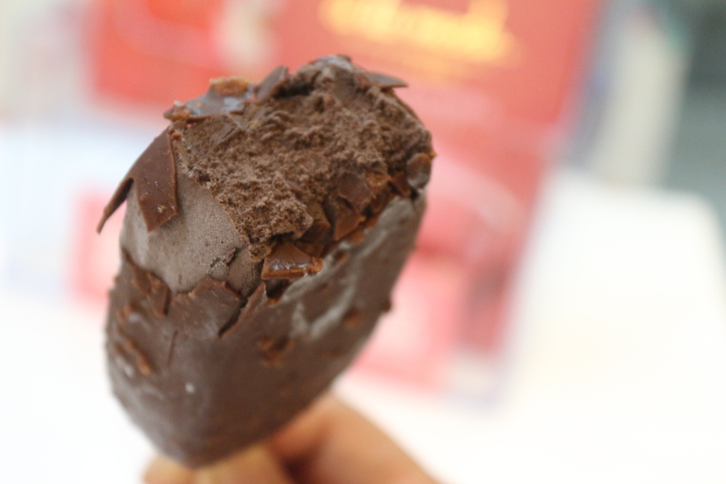 外層包覆著巧克力,內層冰品的巧克力味道十分濃郁