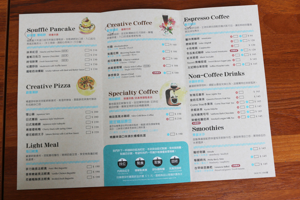 而店家菜單排版簡約乾淨,還有清楚劃分種類