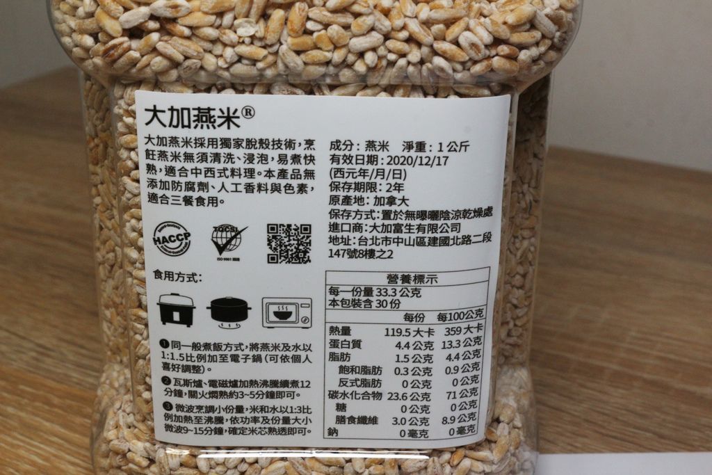 而且又有認證標誌令人感覺專業安心,大加燕米為加拿大進口之獨家脫殼燕麥米,