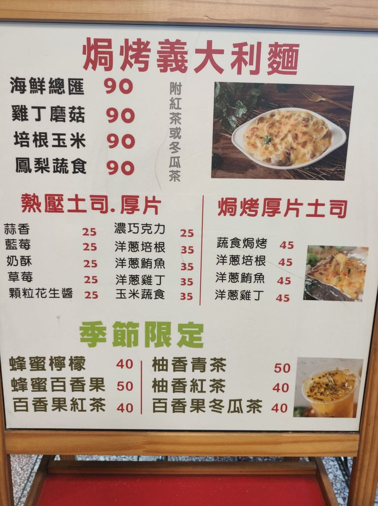 店家不只販售飲品,還有焗烤、熱壓吐司與厚片土司