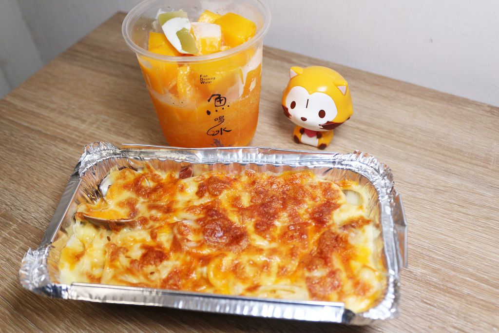 飯編分別買了一份焗烤當作午餐,焗烤的價位不過百元,