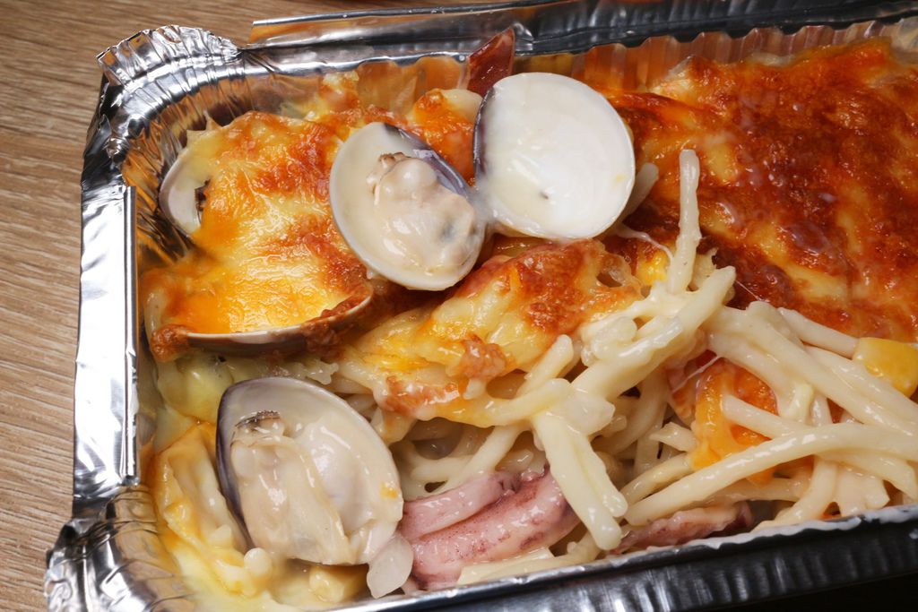 不到百元的焗烤,有鮮甜蛤礪,以及部份的花枝
