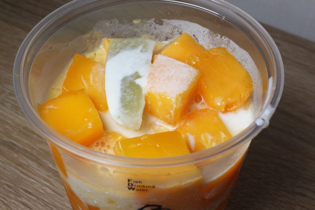 現今的大杯水果冰沙幾乎都要破百,但魚喝水健康茶飲有80元大杯過癮的芒果冰沙