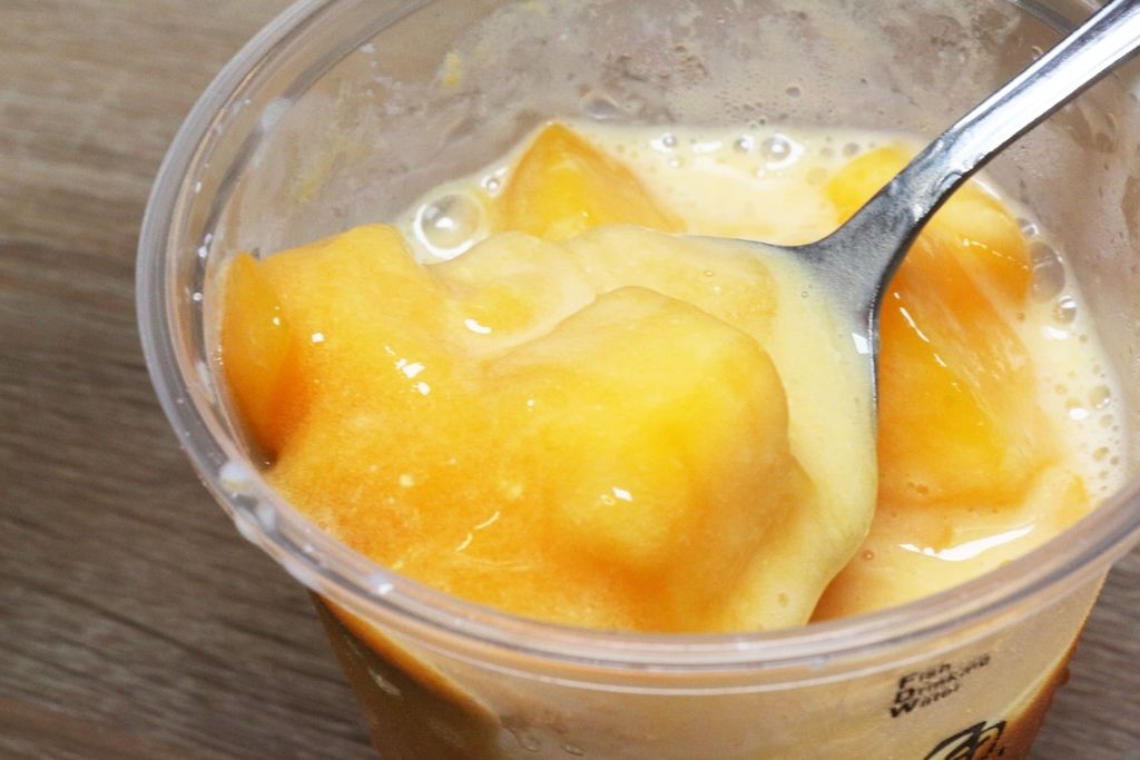 芒果冰沙有大塊芒果切丁,新鮮香甜
