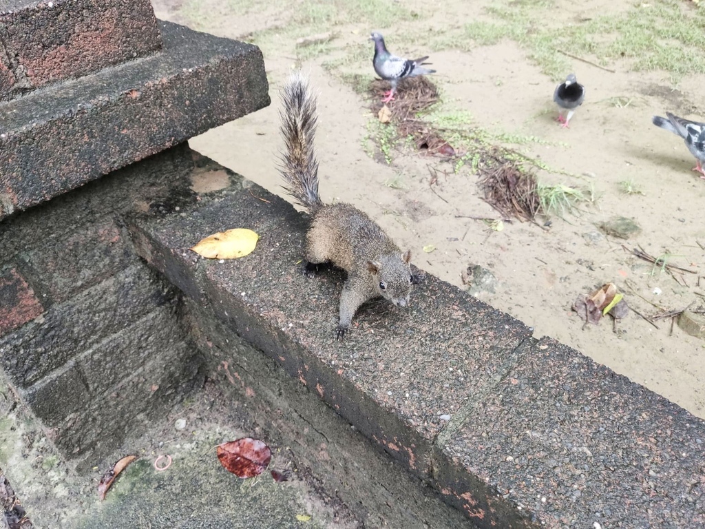 飯編看到松鼠時他居然自動從遠處走來,想說我會給他雞排XD