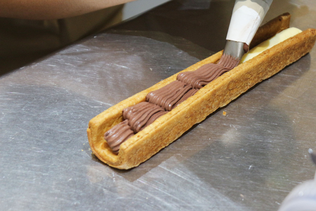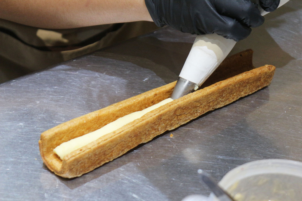 長條狀的千層夾搭配卡士達醬等配料,更是充滿風味特色