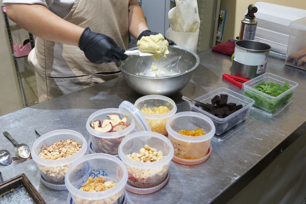 店內各口味配料、內餡分別放置在冰箱與桌面,感覺每一種都很有特色