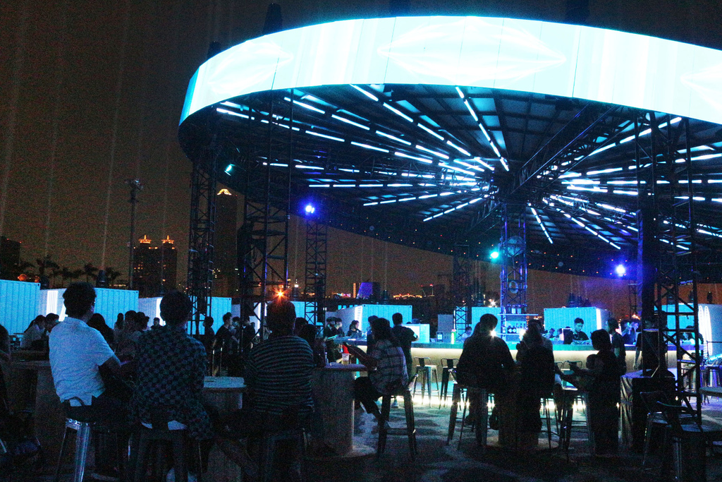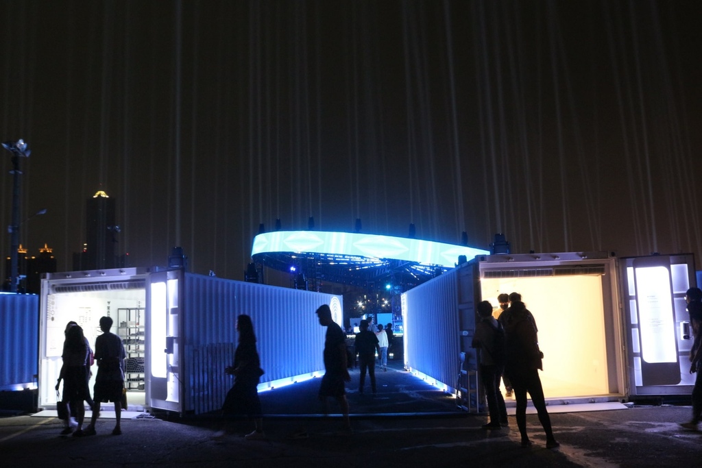 設計中島場地設計,搭配周邊高雄流行音樂中心、85大樓與高雄夜景,還真的頗有太空科幻感