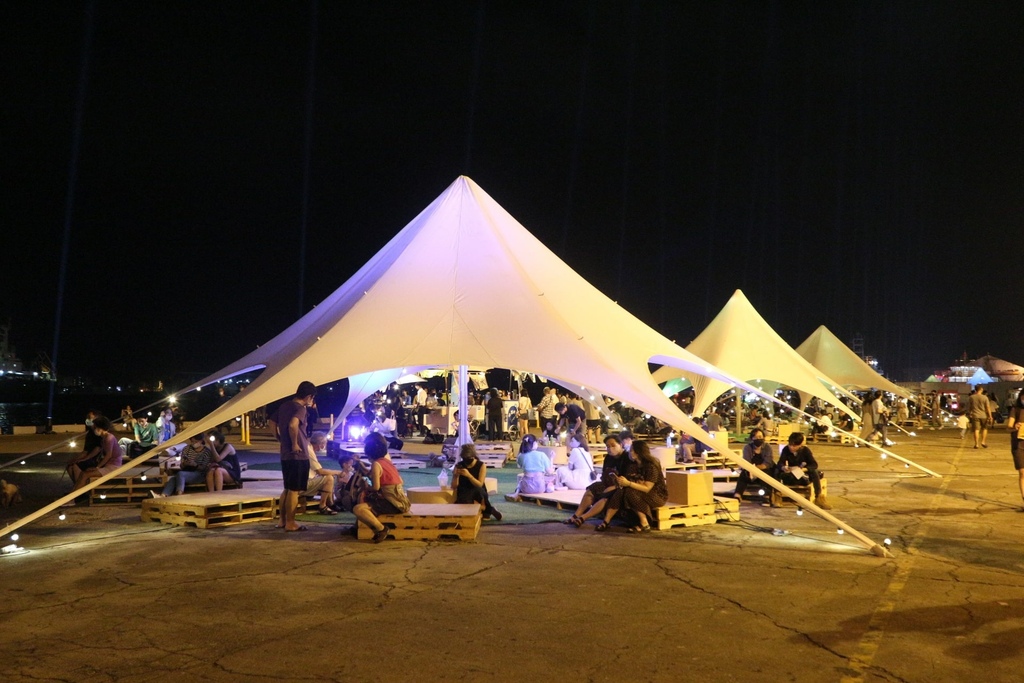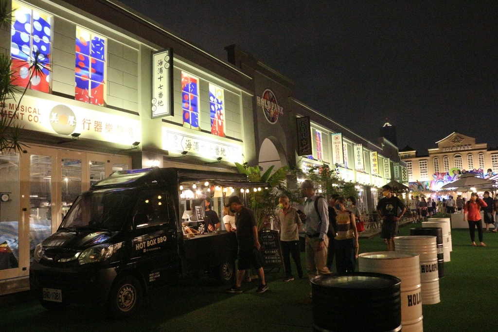 設計中島有座位休息區,此活動為假日限定美食市集: Chill飲夜總匯 2022嬉啤派對x植地市集