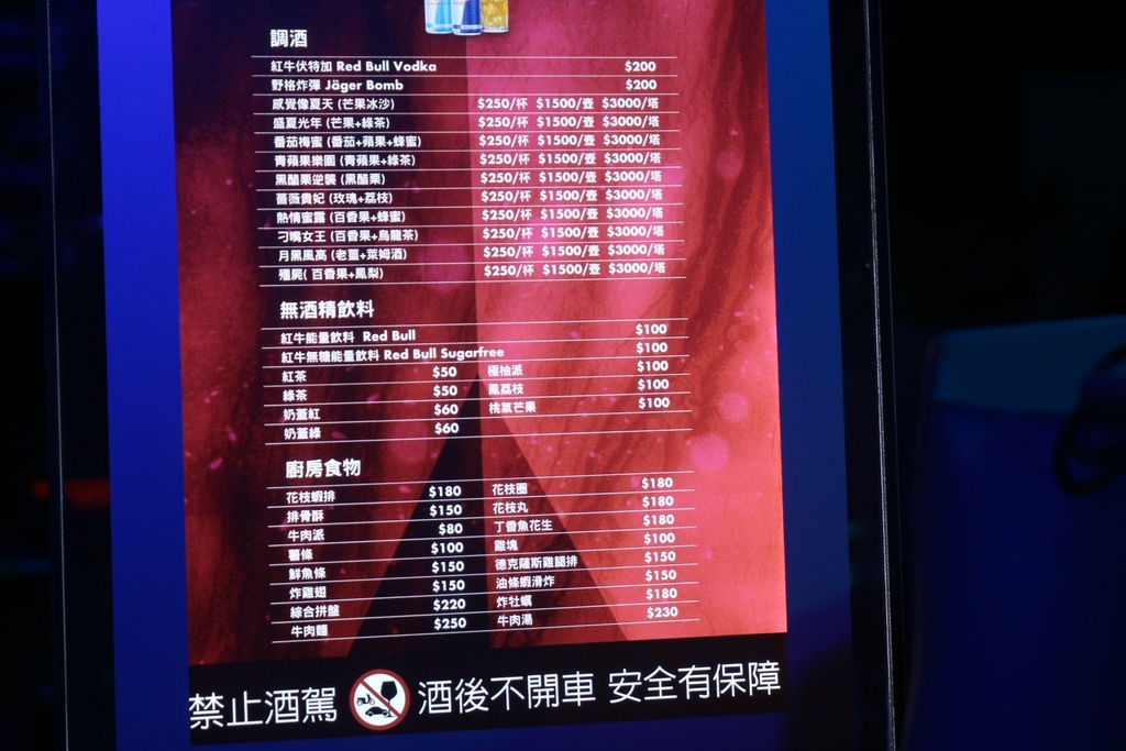 設計中島菜單從調酒、紅牛、茶飲、炸物、主食與湯品都有,