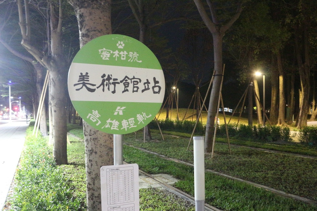 美術館站也是使用清爽綠色招牌,而且聽說輕軌還有一列有可愛的貓站長彩繪 :蜜鉗號