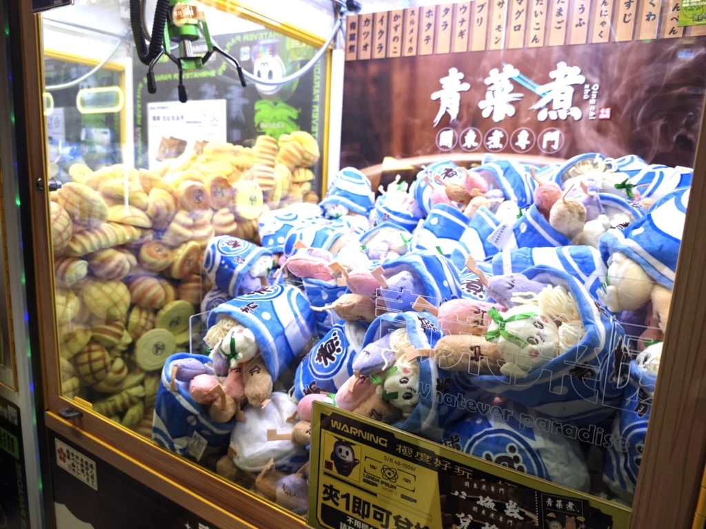 不過問過店員關東煮、壽司、果汁吧娃娃都是代夾物,只有其他可換點數的零食、娃娃或生活用品可以選擇帶走或換點數