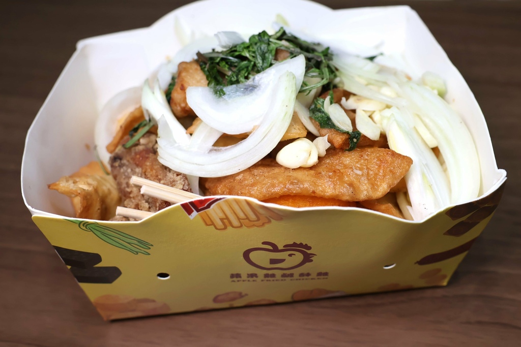 蘋果雞鹹酥雞還有沙茶黑輪片可以選擇,不僅香酥,更帶著一層沙茶香氣點綴,吃起來更具風味層次